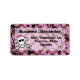 Personalized Pink and Black Skull with Crossbones Label. Add your custom title and detail text. Perfect for teens, school, college and girls who like pink goth. Funky plaid purple background with black paint splatters and skull crossbones with pink bow