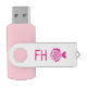 Custom girly pink fish logo swivel USB flash drive. Cute sea life cartoon animal design personalized with custom name or monogram. New pendrives available in different colors. Fun gift idea for men, women and kids. Hole for key chain or cord. Printed Birthday party favor gift idea for kids, children, school teacher, trainer, friend, club etc. Personalized text and customizable background color. Add personalized name, school name, funny quote, slogan or monogram. Change quantity to get the cheap bulk discount price per pen drive. Personalized school and office supplies.