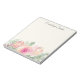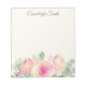 Beautiful blush pink watercolor flowers and sage green leaves on cream-colored custom notepad with your name personalized in an elegant script font.