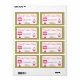 Pretty bakery box label done in green, with a white text area, with a pink scalloped edge. Cute graphics of a polka dot cake, cupcake, and yummy cookies decorate the text area. Pink and black text is ready to personalize for your business needs.