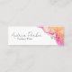 This modern mini business card features a clean, minimalist design with a vibrant pink yellow ink design in the background. The card can be easily customized with your name, title, contact details, and QR code, making it a great choice for professionals who want a simple yet eye-catching card. The design is sleek and modern, making it perfect for a range of industries and professions.