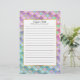 Personalized stationery with a pink, purple, green and teal mermaid scales design with gold trim. Text, font, font size, color and placement are completely customizable.