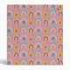 Custom Pink Rainbow Pattern Monogram 3 Ring Binder