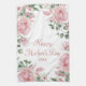 Cute Happy Mother's Day gift towel with a beautiful wreath of pastel pink roses.
