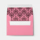 Use this custom pink envelope in place of the generic white envelopes that come standard with all of the cards and invitations in the classic damask wedding set. This personalized pink wedding envelope includes a pre-printed address on the front and a damask pattern on the inside. The default size is 5 3/4" W x 4 3/8 H (A2) and fits the small greeting cards and invitations. You can order a different size by selecting "customize it" and "Choose your paper type and color". A7 fits 5x7 invitations and cards. A6 is for the small invitation, but will also fit the small greeting card (note card). A2 is for the small greeting card (note card), but will also fit the small invitation. We also offer this envelope design without the printed address if you would rather write your own or use address labels.
