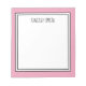 Pink (background color can be edited) personalized notepad with your name or any text you choose at the top.