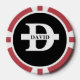 Customized Monogram and Name Poker Chips in Elegant Black and Gold Design.