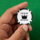 Custom poker chip golf ball markers with crown logo. Personalize with your own funny quote, name or saying. Make your own fun golfing gift for friends and family. Double sided design with custom background color. Sports themed presents and party favors for men or women. Cool idea for Birthday, Holiday, boss day, reunion, Las Vegas wedding, company day, employees, corporate staff, club, office personnel, coach, players, dad and mom etc. Professional poker tokens with colored edges. Easy to take with your equipment.