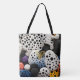 Step out in style with the "Polka Dot Array Custom Tote," a playful yet elegant accessory designed to add a touch of whimsy to your daily ensemble. This tote features a mesmerizing array of polka dots in a sophisticated palette of black, white, and shades of gray, punctuated with subtle hints of color for a modern twist on a classic pattern.