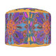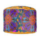 Custom Pouf Stool featuring colorart original “Dragon Dream” mandala in vivid purple and teal