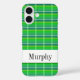 A custom iPhone case with a fresh retro preppy green plaid pattern with small white and blue stripes customize It to add your name or message, and more, even save your design for later.