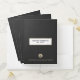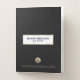Elevate your meetings with this elegant custom presentation folder with pockets. The rich black leather print background, complemented by a brushed gold frame and classic typography, creates a sophisticated look. It provides ample space for noting the date and features a customizable brushed gold seal logo emblem along with your company's name, address, and contact information in golden classic typography. Stay organized and make a lasting impression at your presentations with this distinguished folder.