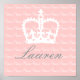 This pretty print features a pattern of white "Princess" text on a blush pink background and a large white crown. Easily customize this print by adding your name or the name of the special Princess in your life. The font, font size and font color are also customizable, simply click "Customize It", then click on the "Design" tab and adjust items as necessary. Optional mats and frames are also available for purchase. PLEASE NOTE: This print is available in various sizes, however, some sizes may cut off the crown and/or text. To avoid disappointment, please pay close attention to the size you select, it will print *exactly* as you see it appears on the screen.
