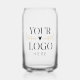 Custom printed stemless can glass with your business logo. Branded promotional supplies for the boss, employees, and customers. To make the logo bigger or smaller please click the button to edit the design.