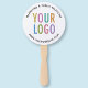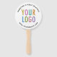 Easily personalize this round hand held fan with your own company logo and custom text. Custom printed hand held fans are handy promotional items for outdoor events or other hot weather occasions. 5.75 inch diameter. Available in white and other colors. Low minimum order quantity and no setup fee.