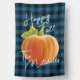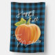 Cute house flag with bright orange and lime green colored Autumn Thanksgiving season pumpkin on a classic black and blue checkered plaid pattern. With room to customize or personalize with family or (limited) text of your choice. Stylish rustic unique outdoor decor accent for decorating the front porch or yard of your country cottage house, log cabin, mountain lodge, fishing camp, lake or river vacation home.