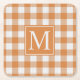 Custom Pumpkin Orange Gingham Pattern Square Paper Coaster