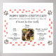 Custom Puppy Birth Certificate: Personalized Keepsake for Your Furry Friend's Special Day!