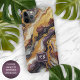 Make your iPhone stand out with this elegant case, featuring a custom purple, black, gray, white, and gold marble pattern. With room to customize or personalize with a name, monogram, or initials of your choice. It has a glossy finish that highlights the beauty of the marble design. This case is perfect for anyone who loves the sophistication and uniqueness of marble, a type of rock that forms from layers of microscopic quartz crystals, creating intricate patterns and bands. Order yours today and enjoy the compliments! This design is available in Apple iPhone 6, 7, and 8 Plus, 10 or X, XR, XS, 11, 12, 13 Mini, 14, 15 Plus, and Pro Max cellphone cases. Show off your style, look fashionable trendy, and feel stylish with a unique design on a mobile device accessory of your choice.