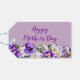 Message is "Happy Mother's Day" on purple gift tag with purple flowers