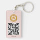 Custom QR Code Logo Text Elegant Blush Pink Keychain