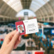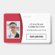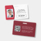 Minimal and modern professional company/business employee photo ID badge with a red design on a white background. Customize with your company's logo and employee's photo. Change the color or leave as is, and add your URL for the QR code and edit the further information on the back if needed. Please browse other employee/business badge options in the Employee ID Custom Photo Logo Badge Collection.