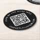 Custom QR code Scan for more info text black Round Paper Coaster