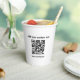 Custom white minimalist qr code paper printed coffee cup. Add and personalize with your own qr code, logo, brand, text, message, informations, website URL, url. Simple white paper cup personalized for weddings, business party, birthdays, marketing, promotion, shops, coffee, restaurant, contest, bar, event , corporate event, , fair trade, companies, business or personal use.