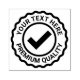 Custom quality control check mark seal rubber stamp . Personalize with custom 100% guarantee text or business name. Circle stamp of approval design with tick ✔. Great for official documents, diplomas and more. Colors and font can be changed.