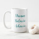 Calligraphy Script Dream Believe Achieve Custom Quote Template Trendy Elegant Light Teal & White 15 oz Classic Coffee Mug.