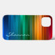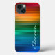Rainbow multicolor stripe tough iPhone 6 case with custom text. Vibrant and striking rainbow ribbon stripe design featuring an array of the many shades of red, green, blue and yellow. Personalize it with your name or any other text you'd like.