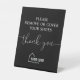 Introducing our custom "Please remove or cover your shoes" countertop sign, designed specifically for realtors. Shown in a classic black and white palette with a modern script font for the "thank you" text, though all colors are editable by you to suit your branding colors. Personalize the template with your text and business logo. © Kimbellished, LLC