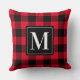 Custom Red and Black Buffalo Plaid Monogram Throw Pillow
