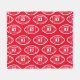 Personalized soccer ball patterned fleece blanket for football players to use when they're not scoring goals on the field, and for their parents to support their kids and stay warm at chilly games! Makes a unique team gift for travel tournaments. Design features a pattern of foot balls that are customized with the player's uniform number.red and white colors.