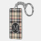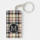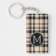 Custom Red Beige Black White Squares Plaid Pattern Keychain