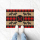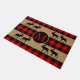Beautiful contemporary black and red checkered plaid pattern. Stylish rustic style doormat with room to customize or personalize with your family name monogram. Original decor accent for decorating the front porch or doorstep of your country cottage house, log cabin, mountain lodge, fishing camp, lake or river vacation home.