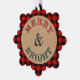 Unique, classic, cute, and decorative Christmas holiday ornament card with a classic red and black Buffalo check pattern on a brown kraft paper-looking background. With the option to customize or personalize your family name, year date, and text of your of your choice.
