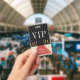 Create an atmosphere of Hollywood glam at your bat mitzvah celebration with these personalized VIP passes. Customizable badge features a red carpet and velvet rope background with "VIP" and two lines of custom text. Add additional text to the reverse side, topped with blush and gold confetti dots. Badges can also be personalized with each individual guest's name if desired.