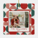 Custom Red Christmas Geometric Pattern 2 Photos Ceramic Ornament