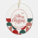 Custom Red Christmas Geometric Pattern Photo Ceramic Ornament