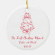 Celebrate your first Christmas as a married couple with this charming ceramic ornament featuring a cute red doodle sketch of a wedding cake, accented by a handwritten script. The unique design is both aesthetic and playful, making it a perfect keepsake to commemorate your special day. Personalized with your names and the year, this ornament captures the joy and love of your first holiday season as newlyweds, adding a sweet and stylish touch to your festive decor.