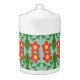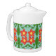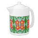 Custom Red Folk Art Flower & Leaf Pattern Teapot