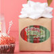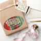 Beautiful, unique, classic, trendy, pretty and decorative Christmas holiday greeting label with a classic Holiday dark red, forest green, and white colored 'Merry Christmas' quote text on a rustic weathered wooden country cottage farmhouse style planks pattern background. With room to easily customize or personalize with your company or family name.
