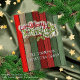 Beautiful, unique, classic, trendy, pretty and decorative Christmas holiday greeting card with a classic Holiday dark red, forest green, and white colored 'Merry Christmas' quote text on a rustic weathered wooden country cottage farmhouse style planks pattern background. With room to easily customize or personalize with your company or family name, and room on the backside to write or print your own Holiday wish.