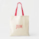 Custom Red Handle Preppy Red Monogram Neutral Canvas Tote Bag