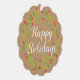 Classic Christmas holiday ornament card with 'Happy Holidays' greeting wish on rustic red Holly berries and green leaves wreath motif on a faux brown kraft paper background. With the option to customize or personalize with your family name and (limited) text of your choice.