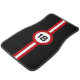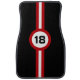 Ride in personalized style. Racing stripe car floor mats. Vertical double racing stripe in red and white. Customize with your own number (or initials) in centered circle. Cool and unique automobile mats.