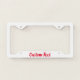 This white license plate frame has text in an elegant red script. The text can be edited or deleted.