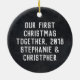 Add your family name, year, our first Christmas together, in our new house, babys first christmas, etc or other message to the back of this keepsake ornament. Old antique Red Pickup Truck with Christmas Tree in the bed, with script typography Merry Christmas, adorable vintage Country southern style holiday theme.