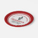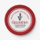 This modern custom red veterinary medicine school graduation party paper plate features the college graduate name in elegant black script for the class of 2025. Customize with your university under the veterinarian medical caduceus for great commemorative graduation decor for a DVM.